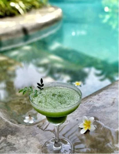 Put everything into a blender and blitz till you get a green frozen slushie.