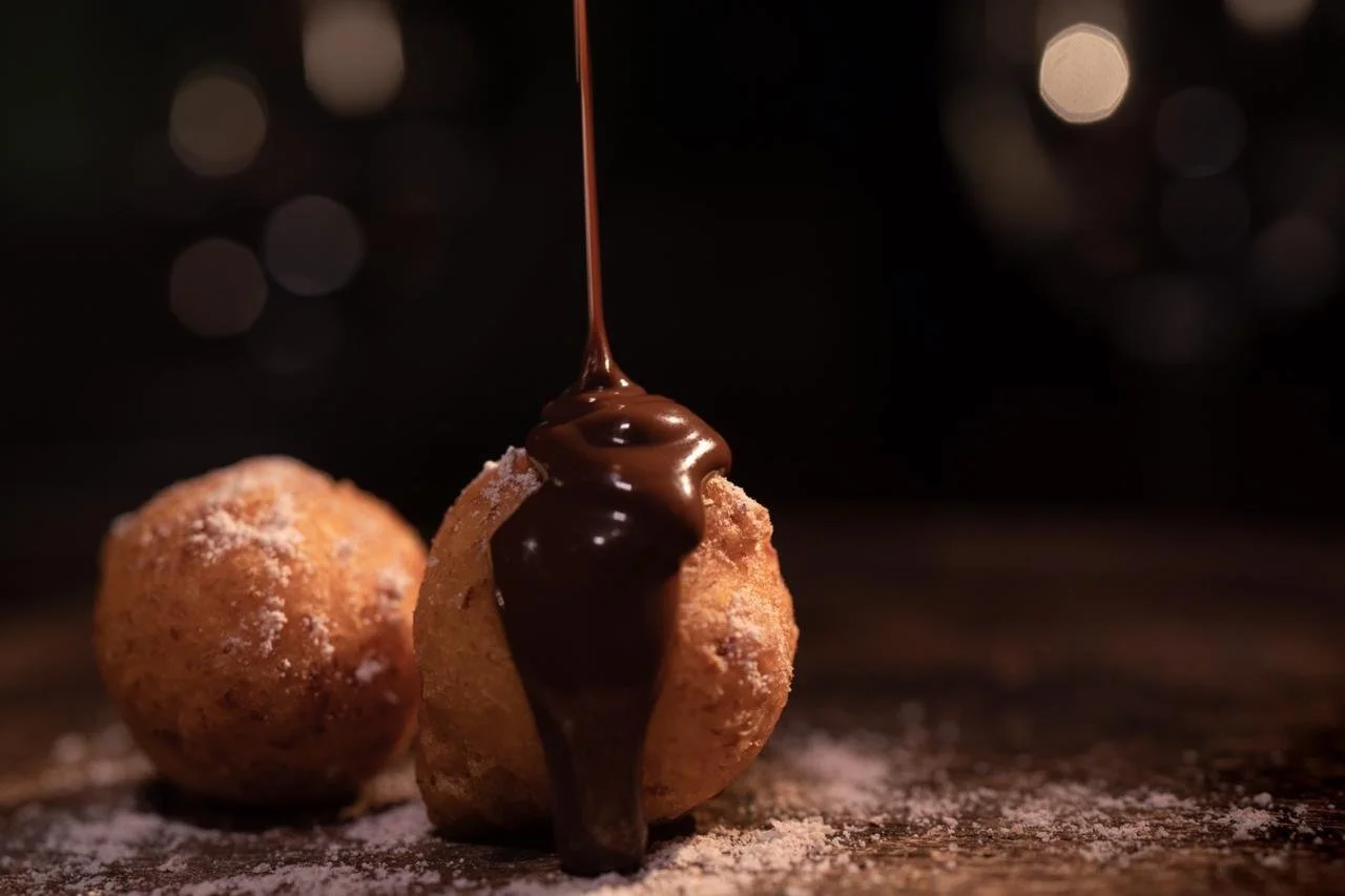 Roll the hot Zeppole spheres in it serve warm with warm chocolate sauce