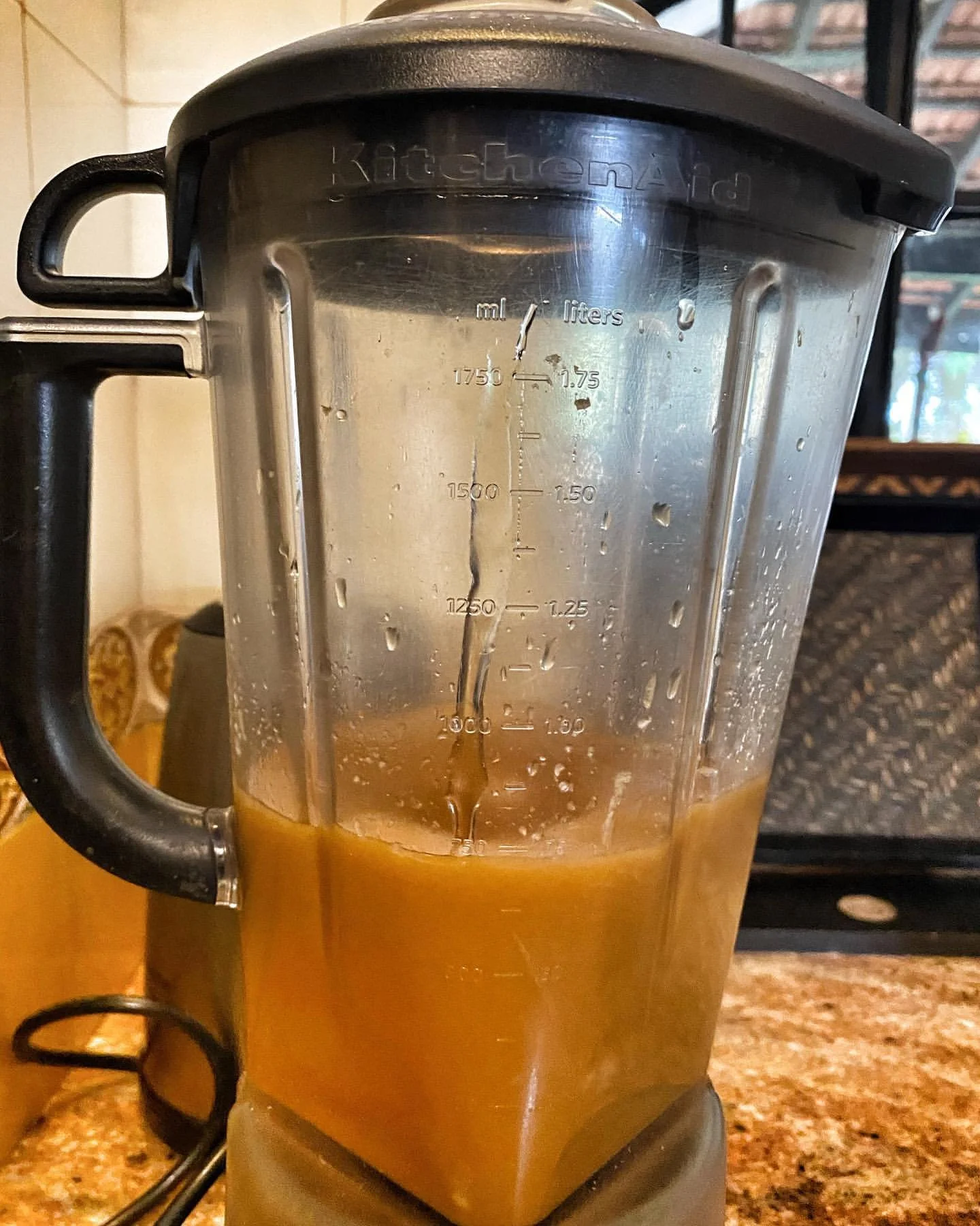 In a blender add all ingredients and blend untill smooth. You can strain with a fine sieve if you don’t like the texture of the Chiku. I let it be as is.