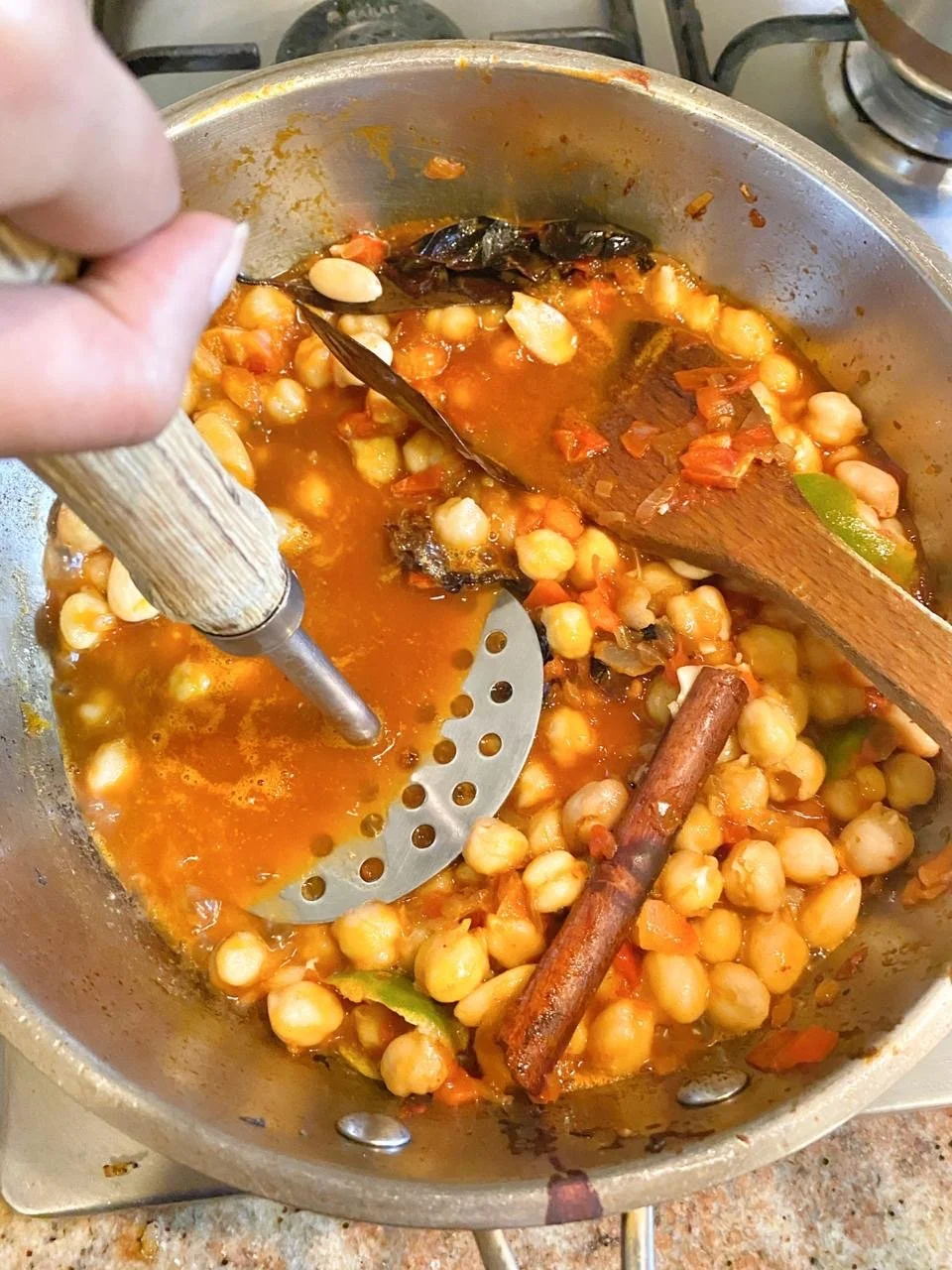 Use a potato masher to bruise the chickpeas a little so that the sauce gets more body